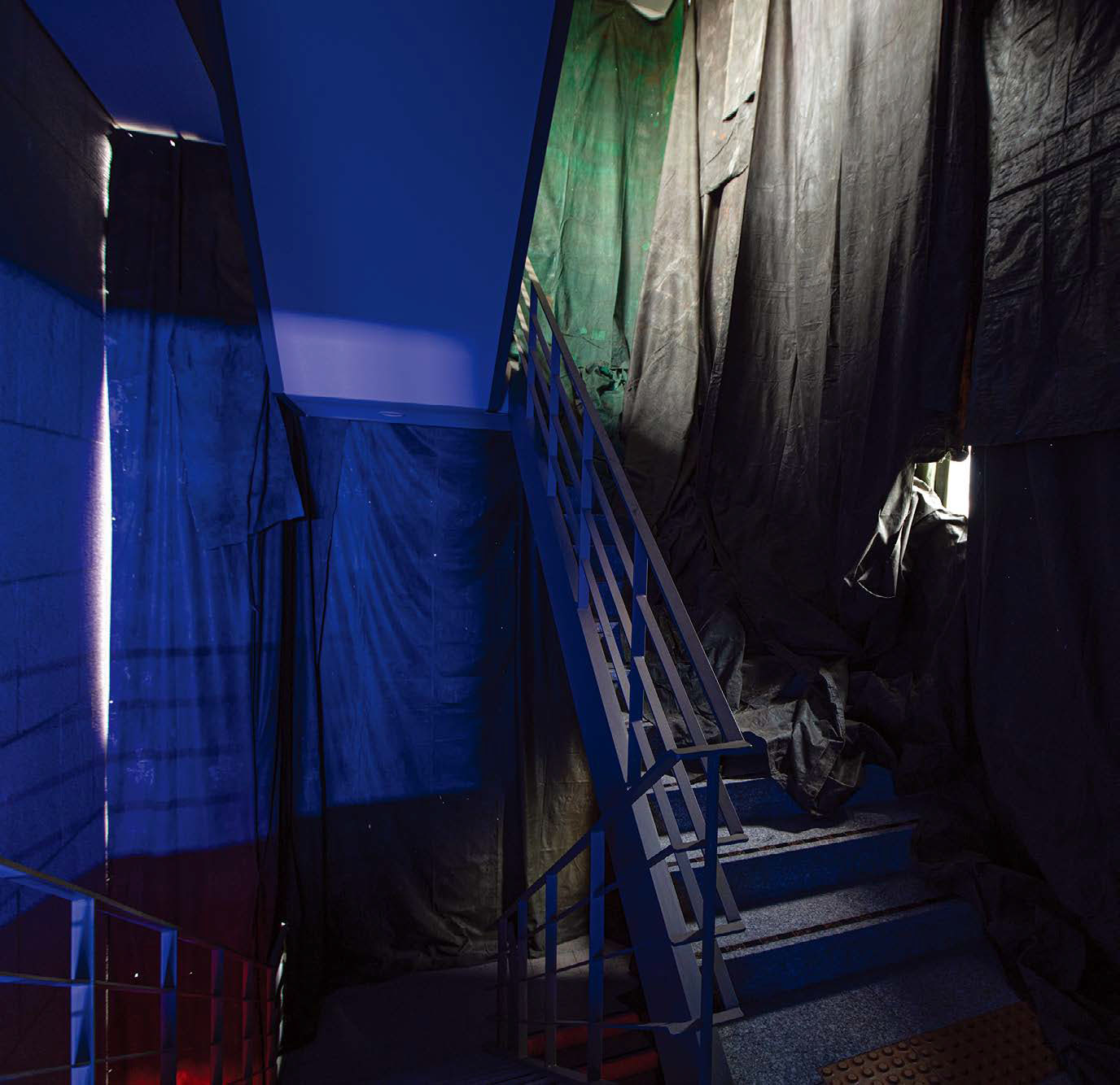 그러나 《적군의 언어》의 핵심은 상승 그 자체보다, 다시 내려오는 과정에서 완성된다. 3층의 불을 지나 다시 아래로 내려오는 동안,관객은 더 이상 관찰자로 남아 있지 않는다. 내가 밟은 흙, 스쳐 지나간 열기, 다시 마주한 비닐과 잔해들은 모두 나의 움직임 속에서 미세하게 재정렬되고 있었다. 작가가 구축한 폐허의 세계를 통과하는 동안, 나는 그 파편을 휘젓고 구조를 흔들며 잔해들 사이를 유영했다. 멸망 이후의 장면을 지나가는 나 자신이 이미 하나의 대사 과정이 되었고, 세계를 다시 쓰는 미세한 힘으로 작동하고 있었다. 상승이 타자의 세계로 들어가는 과정이었다면, 하강은 내가 이미 그 세계의 일부가 되었음을 확인하는 순간이다. 내가 밟는 흙, 내가 통과한 열기 뒤의 냉기, 내가 만들어내는 공기의 흐름은 해석이 아니라 실제로 작품의 생태와 물질적 조건에 개입한다. 관객의 신체는 더 이상 중립적인 감상 도구가 아니라, 전시를 구성하는 하나의 변수로 작동한다. 이 전시는 폐허를 고정된 이미지가 아니라, 통과하는 존재들에 의해 끊임없이 다시 쓰이는 상태로 제시한다.