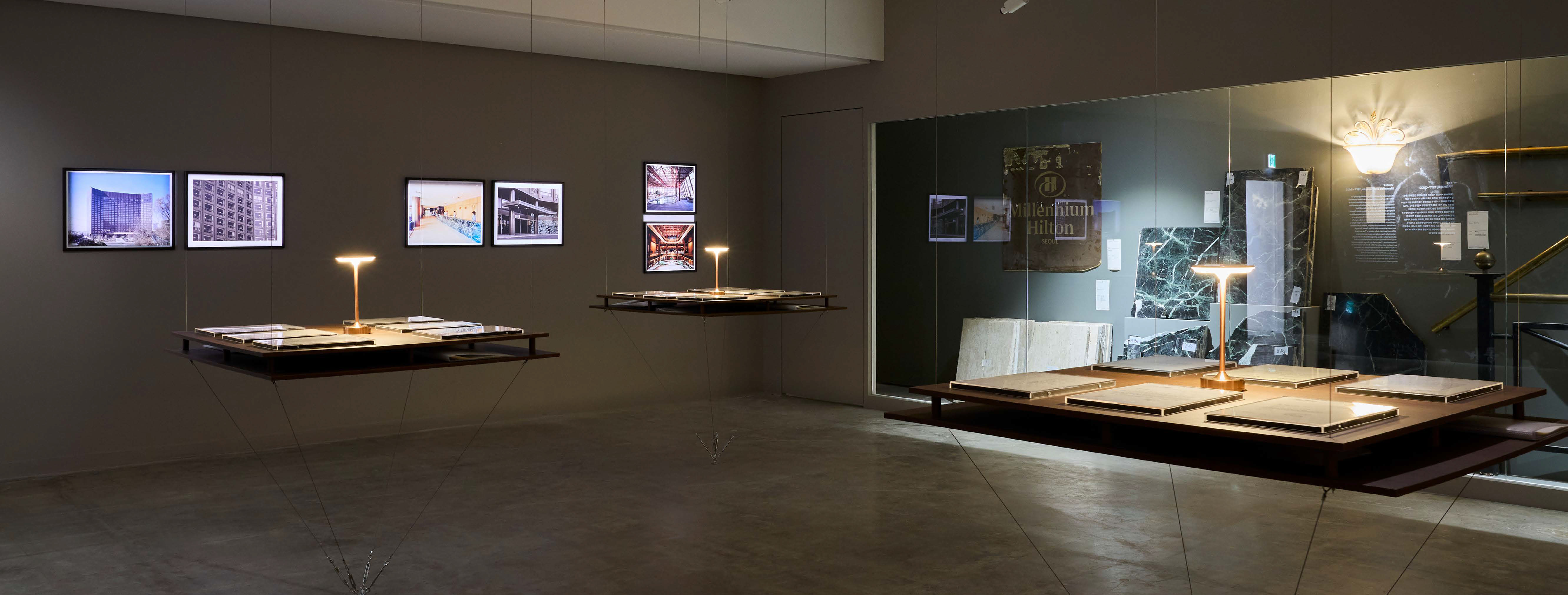 이어서 각종 도면, 공사 현장 사진, 문서, 회의록 등 건축 아카이브가 펼쳐진다. 여기서는 힐튼서울의 주요 공간 사진과 설계도면을 함께 볼 수 있다. 로비를 지나 그랜드 아트리움과 분수대, 그 건너편으로 로비 라운지, 왼편에는 그릴로 표기된 식당과 칵테일 라운지 등 동선에 따라 도면과 사진이 배치됐다. 관람객들이 공간을 쉽게 이해할 수 있도록 했으며 도면을 관람객이 직접 들춰보며 세부사항을 파악할 수 있도록 해 설계작업이 실제 공간으로 어떻게 구현됐는지도 가늠할 수 있다.