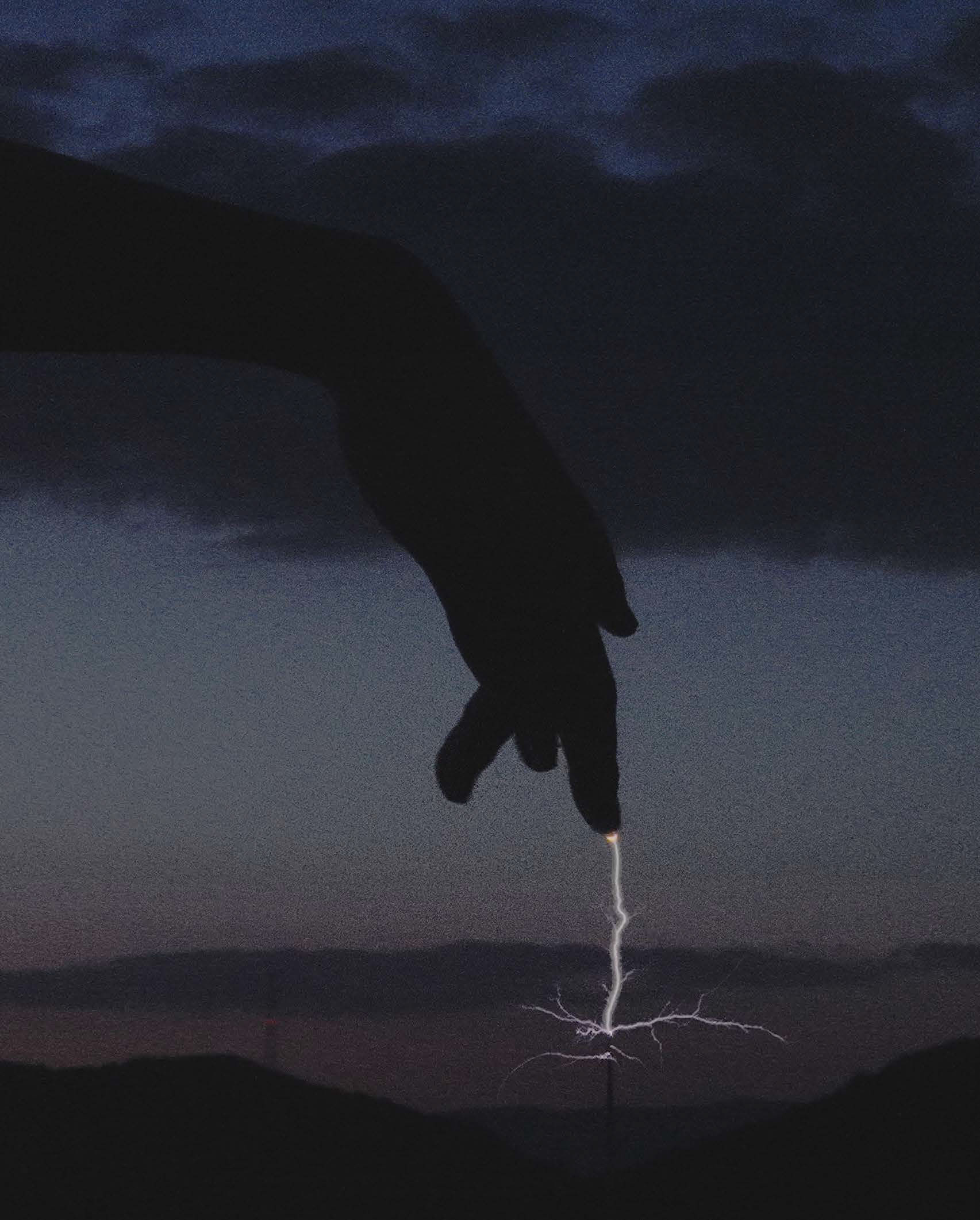 곽소진에게 삶과 죽음, 어둠과 밝음의 모호한 경계는 주로 이렇게 접히고 펼쳐지거나, 거꾸로 뒤집히는 임계점에서 감지된다. 그것은 천으로 만들어졌지만 잘 찢어지지 않고 또 죽음을 방지할 수 있는 낙하산에서 살보다 단단해 외부 자극을 막아주지만 구부러뜨리고 뜯을 수 있는 밀도의 손톱으로 넘어가는 물질의 모호한 경계와도 겹치고, 낮과 밤, 구름과 땅 사이에서 홀연히 나타났다 사라지는 번개는 물론, 빛을 막거나 반사함으로써 투사된 대상을 (안)보이게 하는 반사 스크린(〈이진 탐색〉)의 이중적 위상과도 포개진다. 특히 후자는 재기 넘치는 오디오비주얼 작업인 〈Cloud to Ground〉와 함께 이번 전시의 백미에 해당하는데, 스크린은 공중에 떠 있는 것처럼 가벼워 보이지만 표면에 부착된 비즈(beads)로 인해 육중한 무게를 자랑하고, 프로젝터에서 영사되는 밤 풍경이 핵심인 듯싶지만 동시에 스크린 표면의 지표적 흔적에 대한 주목을 요청한다.