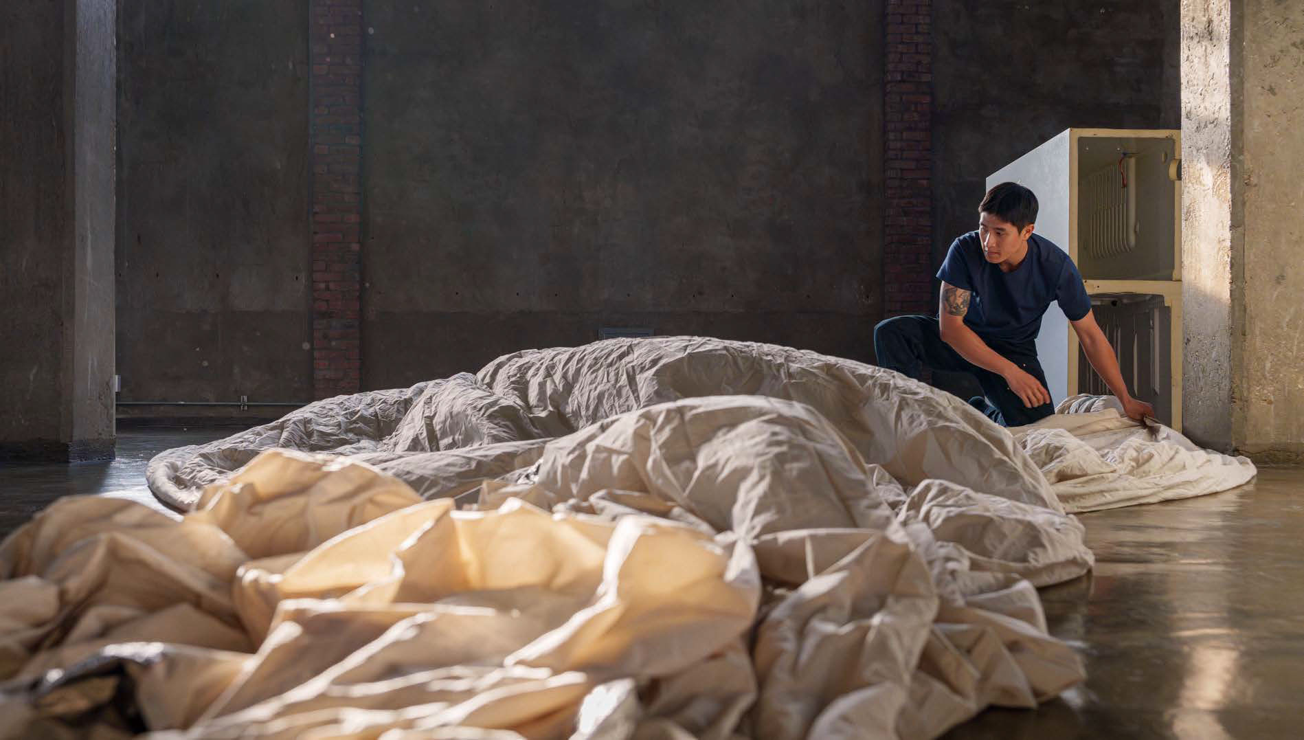 〈PARA〉 라이브 퍼포먼스 3명의 퍼포머, 천, 모래 주머니, 무전기, 라이브 사운드 30분 2024