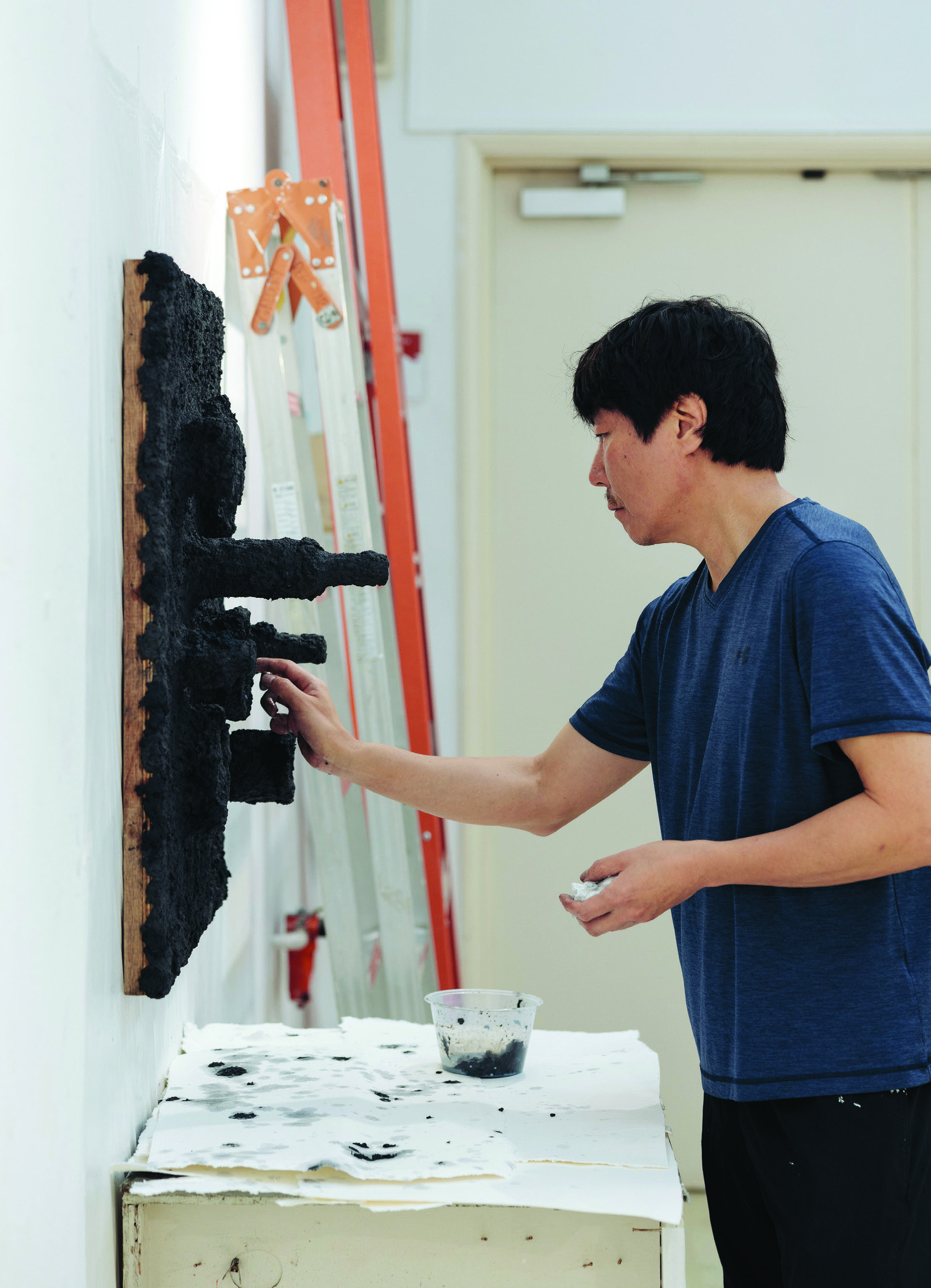 2023년 싱가포르 STPI 레지던시에서 작업에 몰두하고 있는 김범