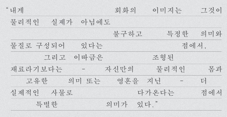 김범의 작업은 하나의 키워드나 개념으로 설명하는 것보다, 그의 작품을 독자 개개인의 시선에서 차분히 감각하게 하는 것이 중요하다. 다르게 말하면 그의 이미지가 품은 의미는 관람객이 이 구조를 어떻게 작동시키고 수용하는지에 달려있다. 마치 수없이 많은 겹으로 이루어진 한지의 결을 손가락으로 찾는 것 처럼, 김범의 작업과 텍스트는 보면 볼수록, 읽으면 읽을수록 또 다른 새로운 결을 드러낸다. 월간미술대상 심의위원, 그리고 그와 전시를 꾸렸던 큐레이터의 언어로 구성된 이번 꼭지는 김범의 작업 세계로 향하는 첫 번째 이정표다.