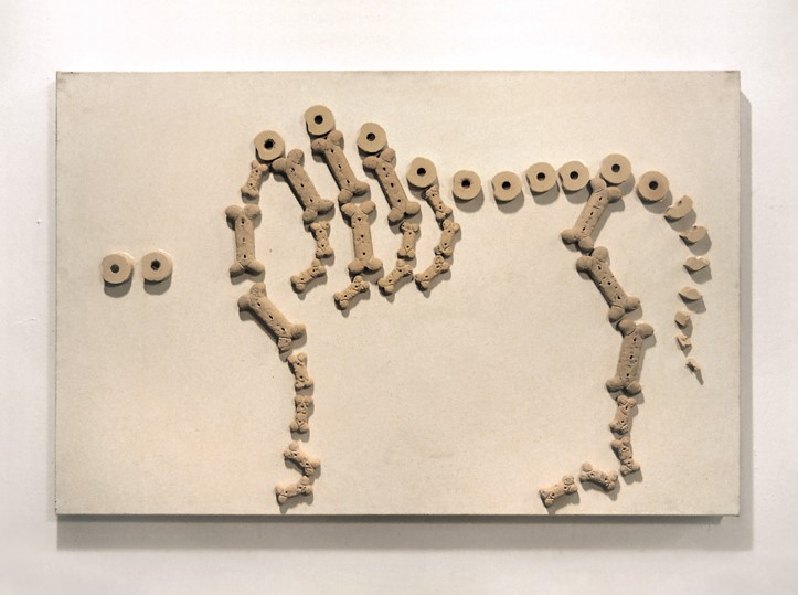 〈개 먹이 개〉 캔버스에 개 사료 66×102cm 1993