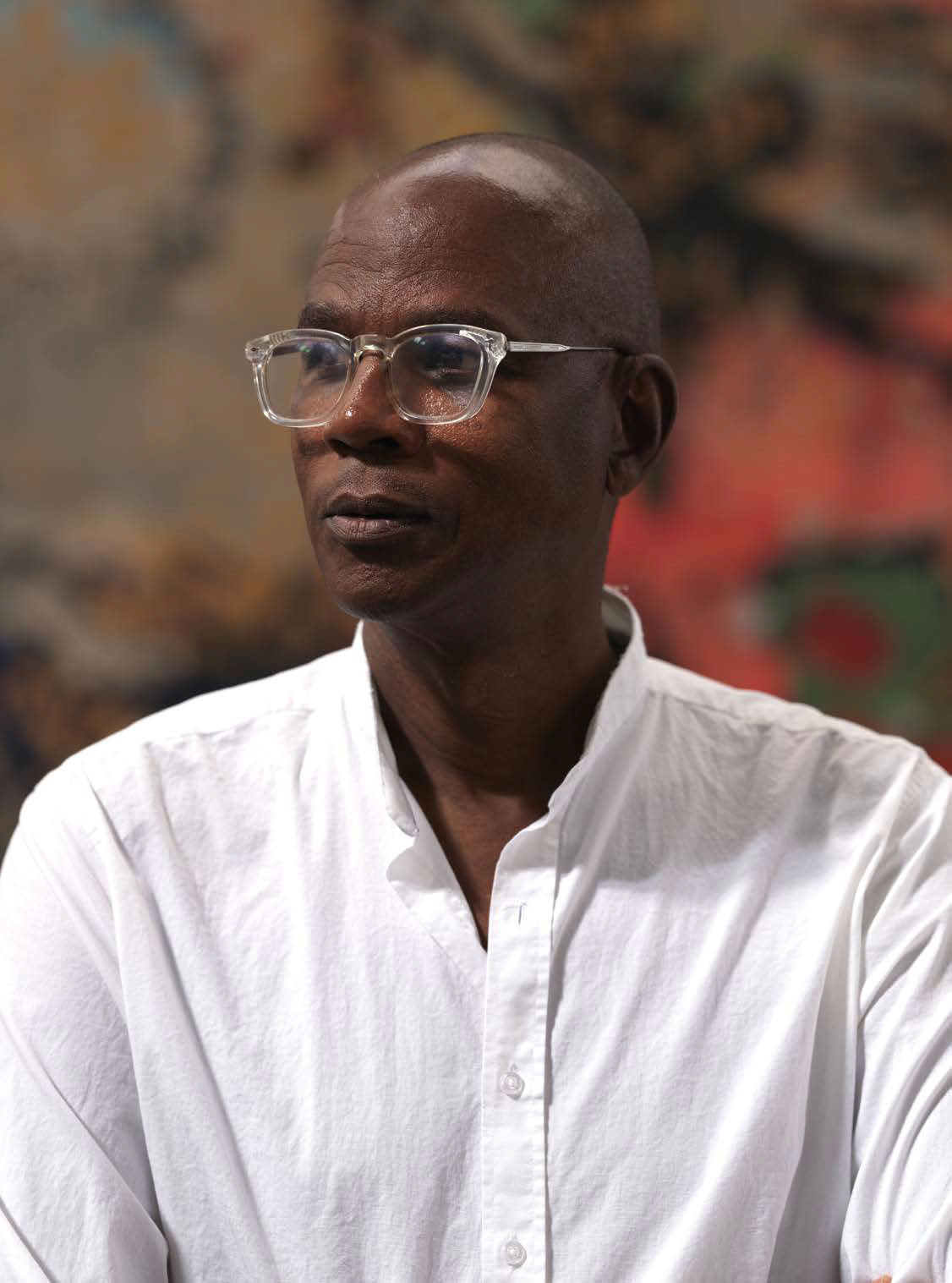마크 브래드포드 / 1961년생. 캘리포니아 예술대(CalArts)에서 학사 및 석사 학위를 받았다. 도시의 거리에서 수집한 포스터, 전단지, 지도, 미용실의 파마용지 등 버려진 종이를 주재료로 사용하여 겹겹이 쌓고 갈아내는 독창적인 데콜라주 기법을 통해 사회적 메시지를 시각화하는 대형 추상회화로 잘 알려져 있다. 제57회 베니스비엔날레 미국관 대표 작가로 선정(2017)된 바 있으며, 하우저앤워스(런던), 롱뮤지엄(상하이), 허시혼미술관(워싱턴 D.C.), 해머미술관(L.A.) 등 세계 유수의 미술 공간에서 개인전을 개최했고, 뉴욕현대미술관, 구겐하임미술관, 테이트 모던, 워커아트센터 등에 작품이 소장되어 있다. 로스앤젤레스 기반의 비영리 예술 단체 ‘아트앤프랙티스(Art + Practice)’를 공동 설립하여 지역 사회와 예술 교육을 지원하는 활동을 이어오고 있다.