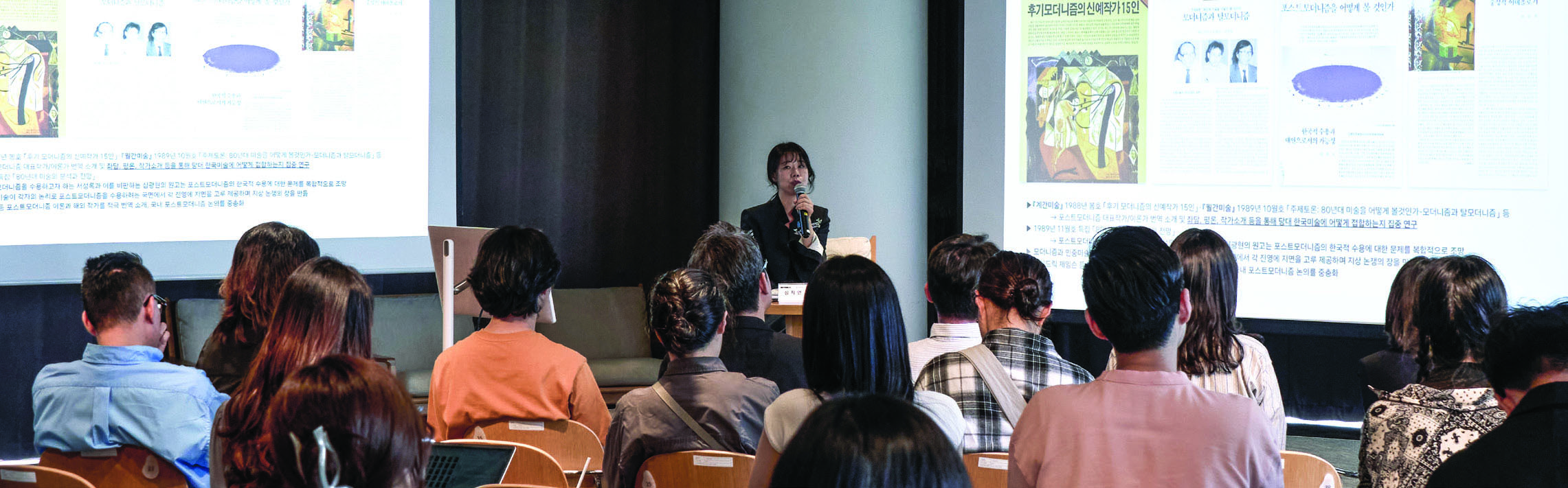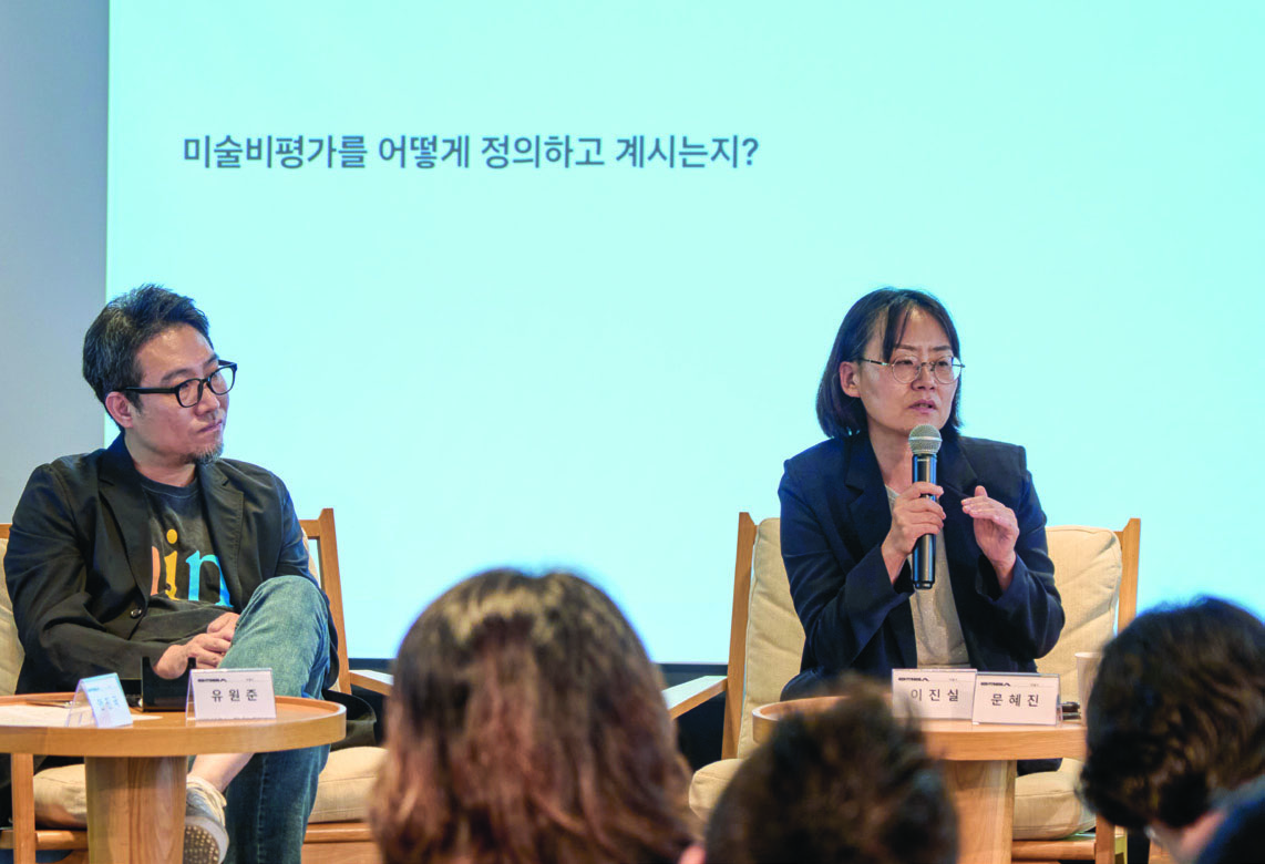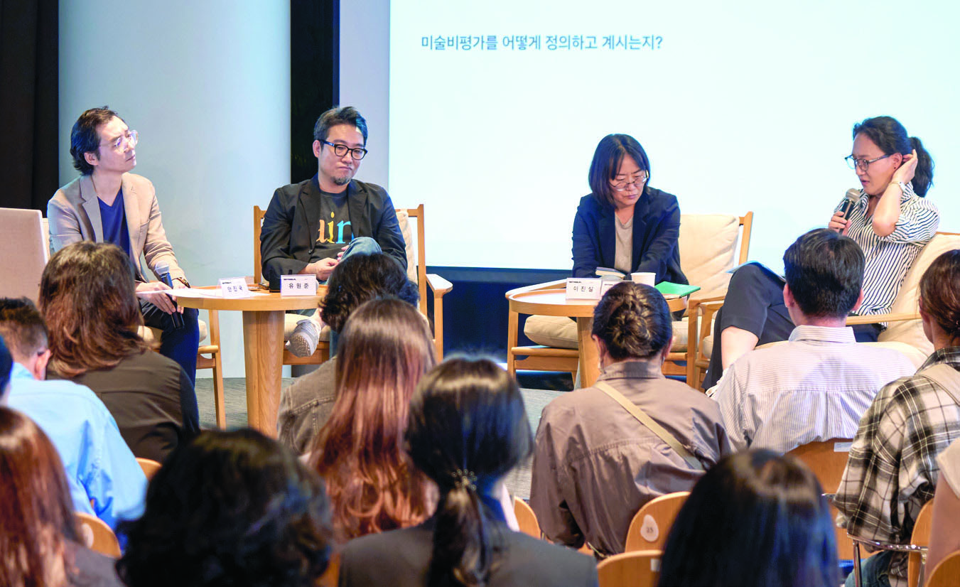 이어 김정현 비평가는 미술비평이 잡지와의 관계 속에서 어떻게 변화해 왔는지 분석했다. 그는 『월간미술』의 아카이브를 중심으로, 비평의 ‘위기’ 담론이 반복되어 온 현실을 지적했다. 또 비평의 내적 논리보다 이를 수용하는 환경의 위기에 주목하며, 잡지와 비평이 상호 의존적 관계 속에서 새로운 형태의 생태계를 구축해야 한다고 말했다. 발표 후 안진국 비평가의 사회로 진행된 토론 ‘오늘날 미술비평은 어디서 발화되는가’에서는 월갈미술대상 비평부분 수상자인 유원준, 이진실, 문혜진 비평가가 참여해 비평의 역할을 논의했다. 패널들은 전시 서문과 리뷰 중심의 글쓰기 관행이 비평의 자율성을 약화시켰다고 지적하며, 평가와 이론화를 포함한 비평의 본질적 기능을 회복해야 한다고 강조했다. 또한 작가 지원 중심의 제도적 구조가 비평을 주변화시키고 있다는 점에서, 지속 가능한 비평 환경의 필요성에 대하여 공감대를 형성했다.