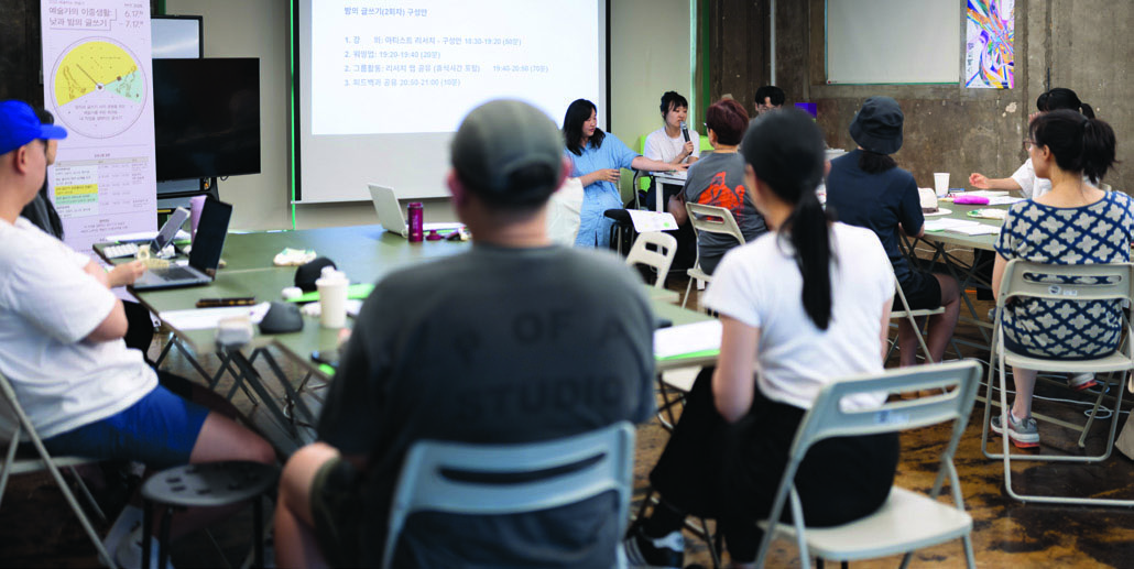 ‘밤의 글쓰기: 아티스틱 리서치’를 진행하는 모습