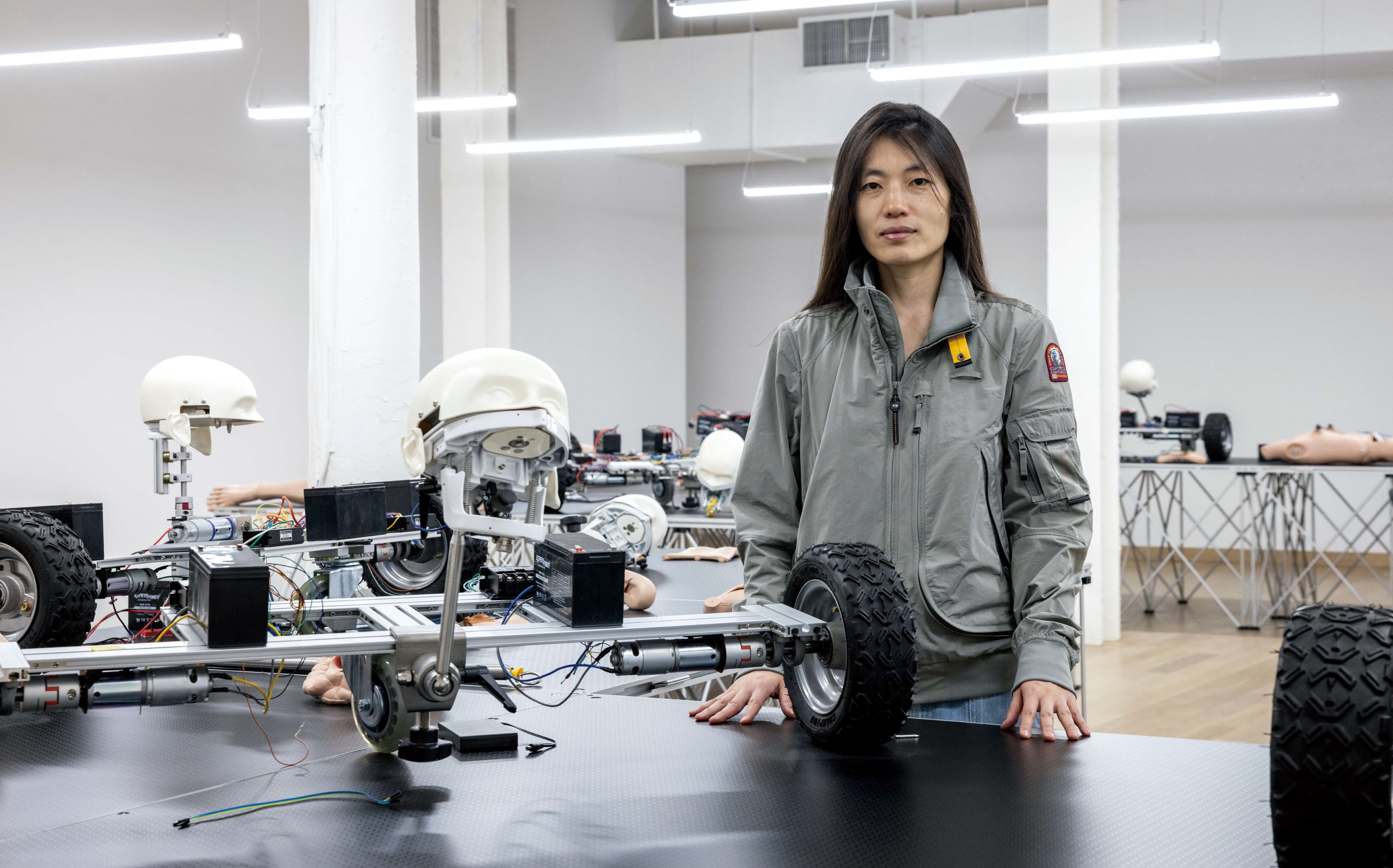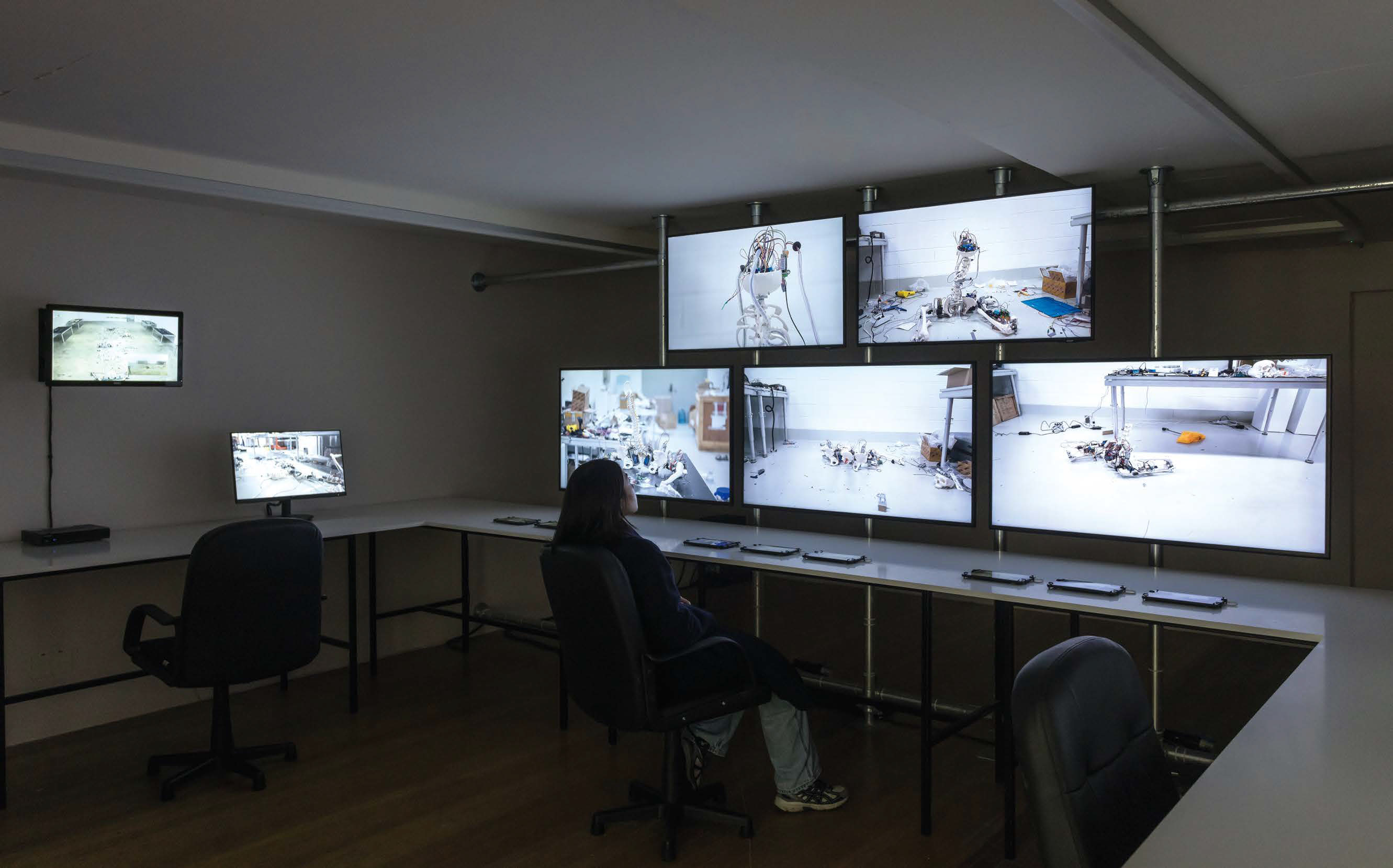 올해 초 정금형은 자신의 부천 작업실에 사람들을 초대해 ‘작업 보고회’ 형식의 작은 퍼포먼스를 진행했다. 이때 정금형은 옆에 세워둔 그녀의 로봇을 원격 조종해 어떤 움직임을 선보이려 했는데 여러 차례의 시도에도 기어이 작동하지 않자 손에 쥐고 있던 리모컨을 던져버렸다— 이것이 의도된 각본이라면 그야말로 그녀는 철저히 실패의 상연을 목표로 한 것 아닌가. 실패의 실행으로서 퍼포먼스는 관객들에게 그녀의 욕망과 좌절의 순간으로, 즉 아주 은밀한 비밀로 초대받은 듯한 느낌을 안겨 준다. 2024년 런던 ICA 전시에서도 그러한 은밀한 공간이 마련된 것 같다. 전시장의 작은 방 안에 폐쇄회로 티비(CCTV)처럼 설치된 모니터들은 그녀의 로봇들이 끊임없이 실패와 발전을 거듭하는 실험의 순간들을 반복 재생했기 때문이다.