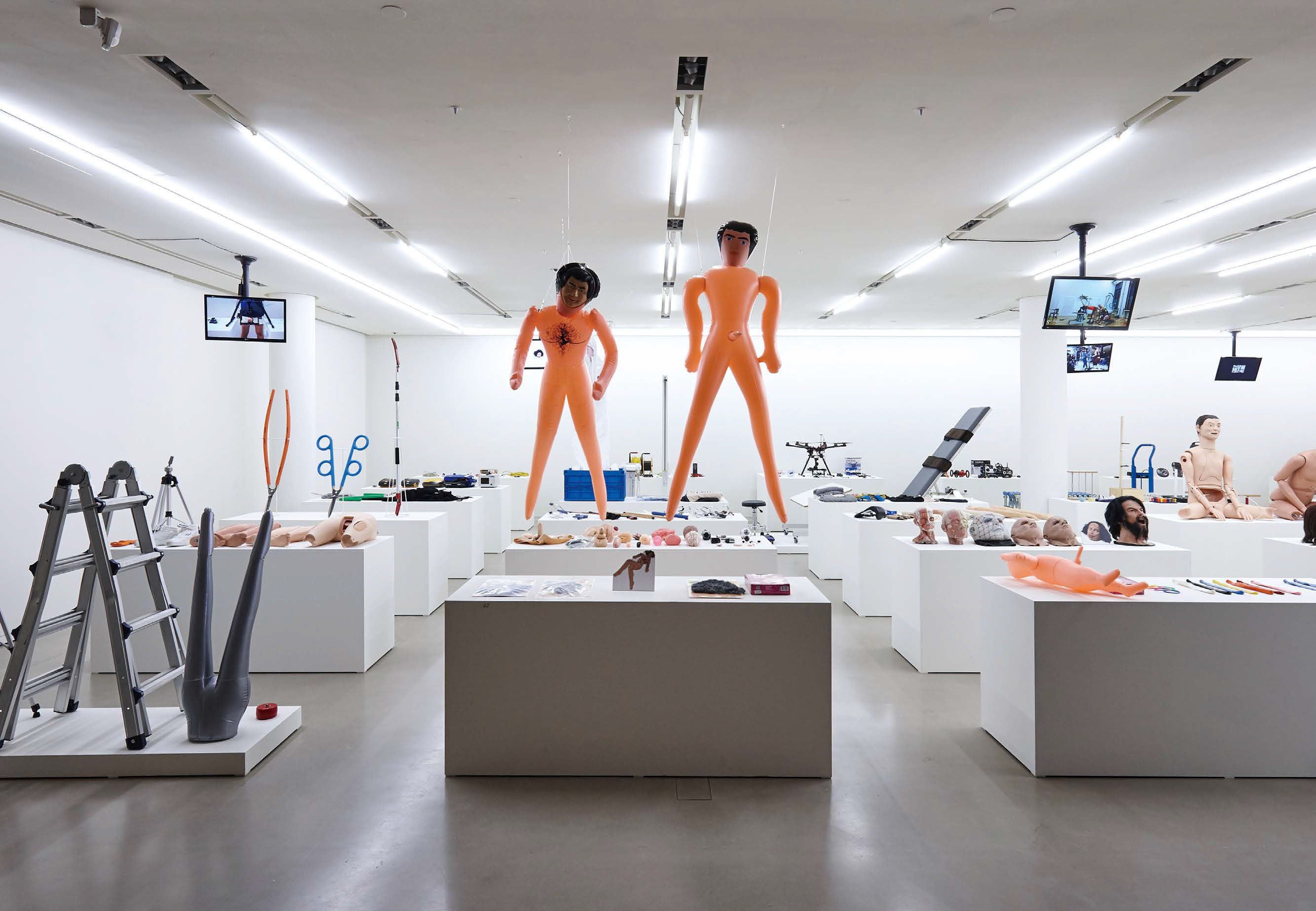 그러나 조립 및 완성, 혹은 새로운 탄생을 기다리는 부품들의 진열, 재활과 망가짐 사이에서 진동하는 괴팍한(idiosyncrasy) 수집품들의 수장고로서 작업대/작업실의 실체를 전시장으로 옮겨 놓은 최근 전시들은 움직이는 인형과의 은밀한 파트너십, 섹슈얼한 내러티브를 만들어내던 과거의 작업 양상과는 분명 또 다른 국면을 만들고 있다. 물론 정금형의 작업에서 전시의 포맷이 강화된 것은 작가의 순전한 의지라기보다 미술계의 더 잦은 호출, 그리고 동시대 미술관으로 넘어온 퍼포먼스의 다변화적 양태 속에 자연스럽게 도출된 것일 테다. 그녀의 작업이 이벤트성 공연에서 디스플레이 포맷으로 본격 전환한 기점은 아마도 2016년 아뜰리에 에르메스에서 열린 개인전 《개인소장품》이 아니었을까 싶다. 그전까지 라이브 퍼포먼스를 통해 마네킹, 진공청소기, 운동기구, 굴삭기 등을 동원하며 조종자와 조종하는 사물의 성애적인 관계를 다루던 정금형은 이 전시에서 자신의 다양한 인형과 도구들을 ‘수집과 소장’의 맥락으로 펼쳐 보였다.