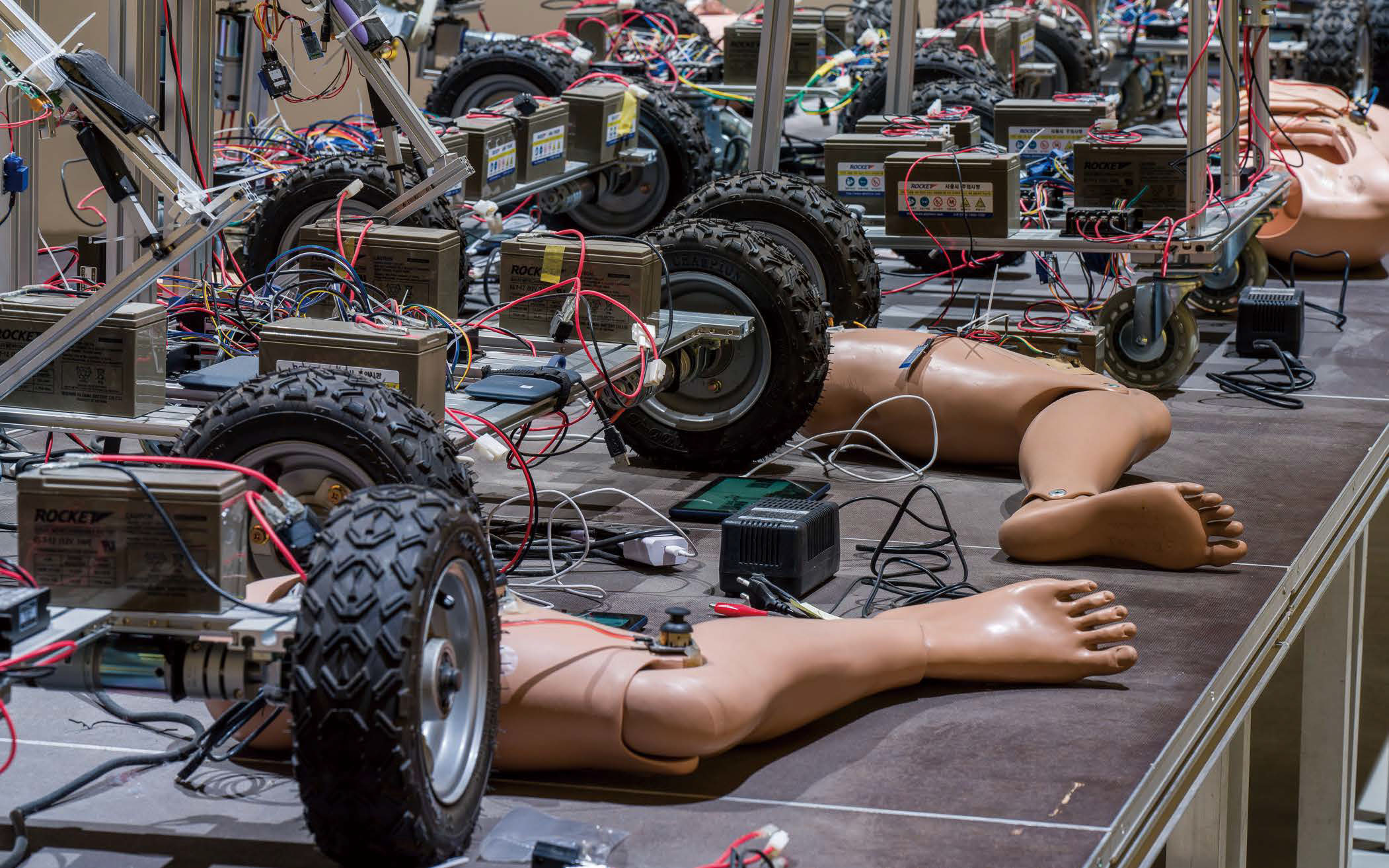 〈Toy Prototype〉조각과영상 설치, 알루미늄 프로파일, 의료 시뮬레이터, DC 모터, 아두이노 보드, 조이스틱 등 다양한 재료 가변 크기 2021