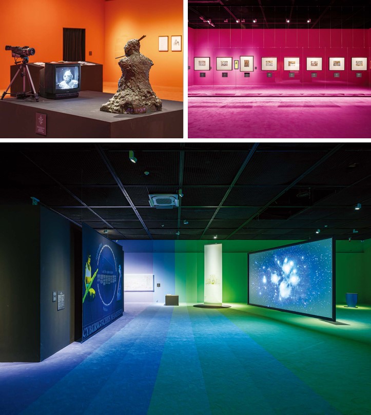 아래 ‘트랜스’ 세션과 ‘실천적 우주론’ 세션에 걸쳐있는 서울시립미술관 전시 전경