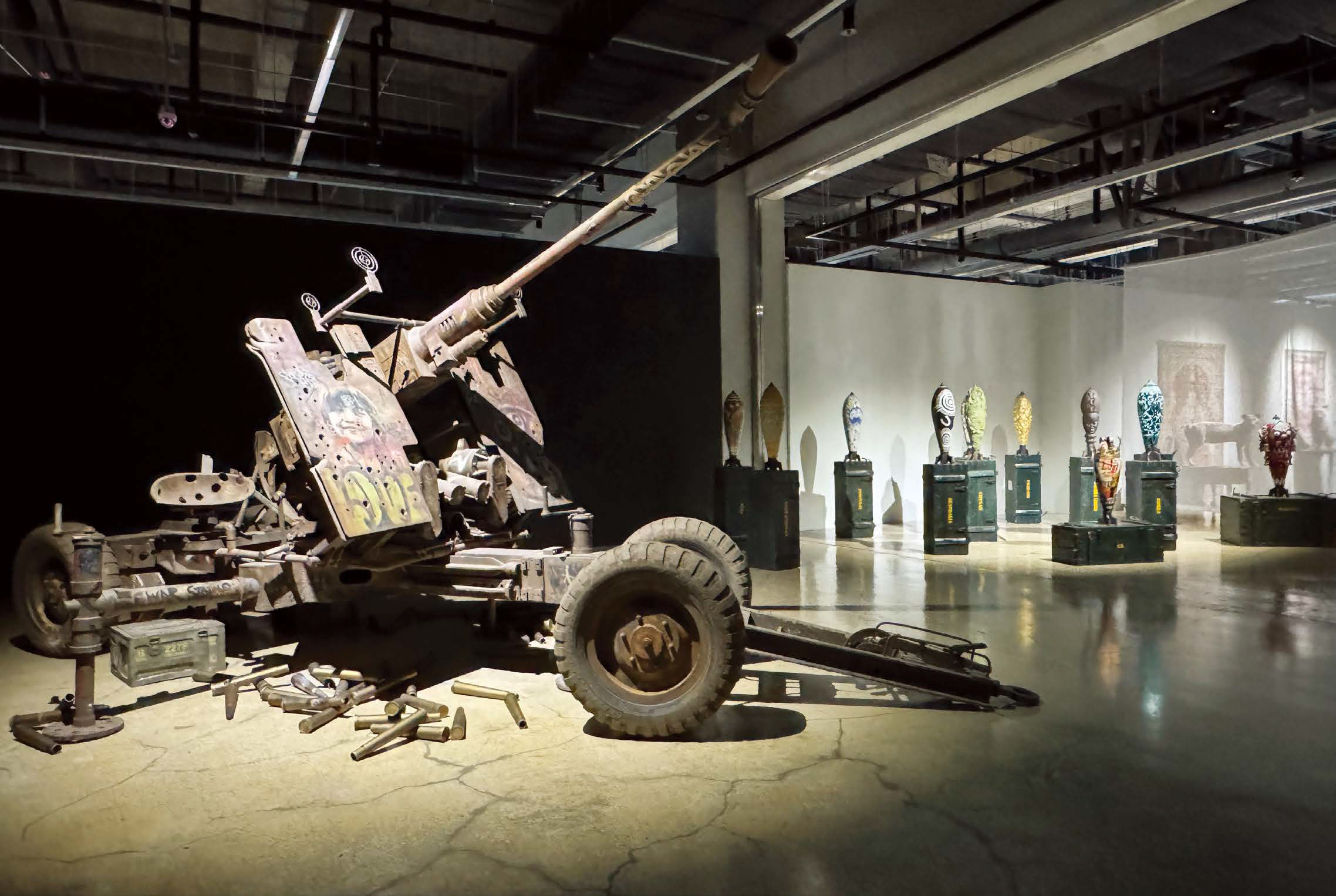 세 번째 섹션 ‘모든 존재자를 위한 공예’는 인간의 욕망과 소비를 넘어선 자리에서 공예가 무엇을 할 수 있는지를 묻는다. 이른바 ‘크래프티비즘(craftivism)’이라 불리는 공예의 사회적·생태적 확장이다. 레바논의 카티야 트라불시는 전쟁의 상징인 미사일을 각국의 문양과 장식으로 치장해 폭력의 도구를 치유의 서사로 전환한다. 미국 작가 멜리사 카메론은 금속 주얼리를 매개로 총기 사고라는 사회적 비극을 기록한다. 그는 하루 동안 총으로 목숨을 잃은 73명의 희생자를 조사해, 당시 사용된 총기의 형태를 본뜬 오브제를 제작하고 이를 군번줄처럼 엮어냈다. 몸을 장식하는 장신구가 누군가의 죽음을 기억하게 함으로써 공예는 사회적 사건을 환기하는 감각적 언어로 기능한다.