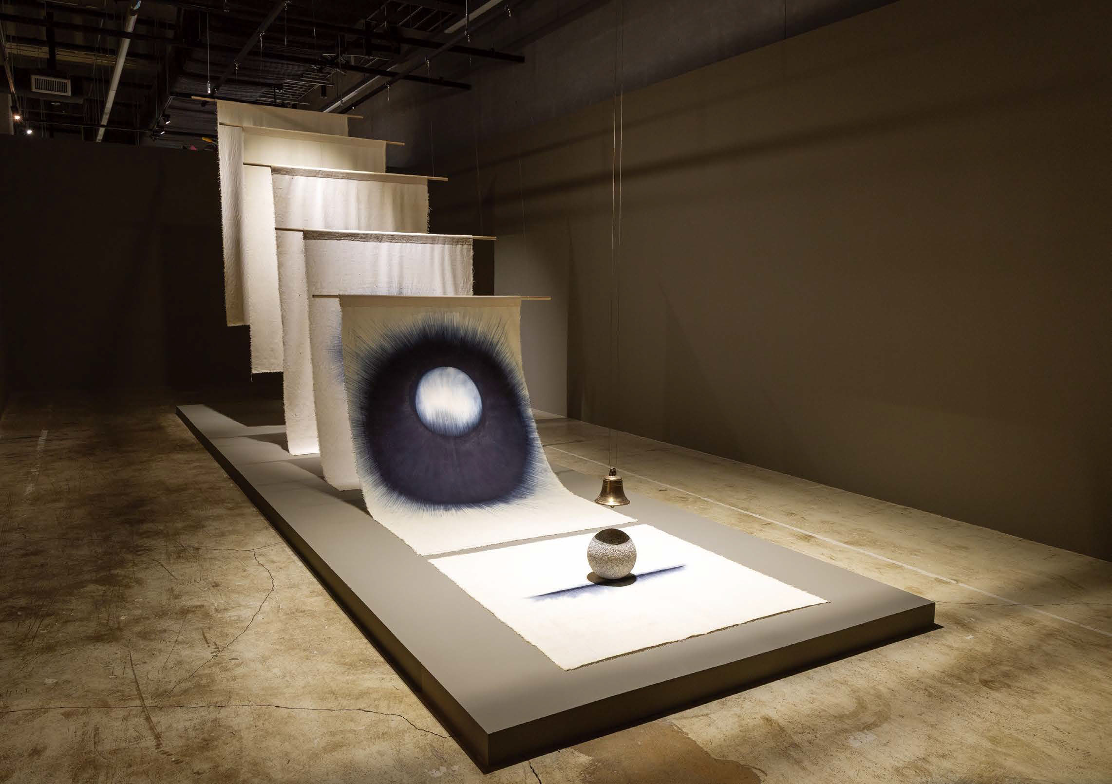 제작한 청동 종, 비나 줄, 전통 사원 장인이 정교하게 조각한 화강암 구체, 사운드 설치 가변 크기 2025