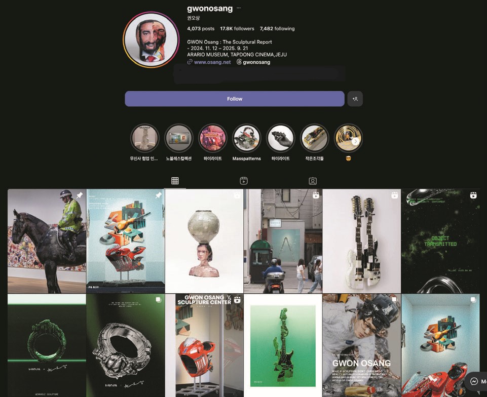 권오상(@gwonosang)과 추수(@tzusoo)의 인스타그램 계정은 이런 측면에서 주목할 만하다. 피드만 정주행해도 작업의 방향성과 프로젝트 히스토리를 쉽게 읽을 수 있으며, 한국어와 영어를 병기해 국제적 확장 가능성까지 열어뒀다. 이는 미술계 관계자는 물론, 브랜드나 기업 입장에서도 협업을 상상하고 제안하기에 이상적인 포맷이다.