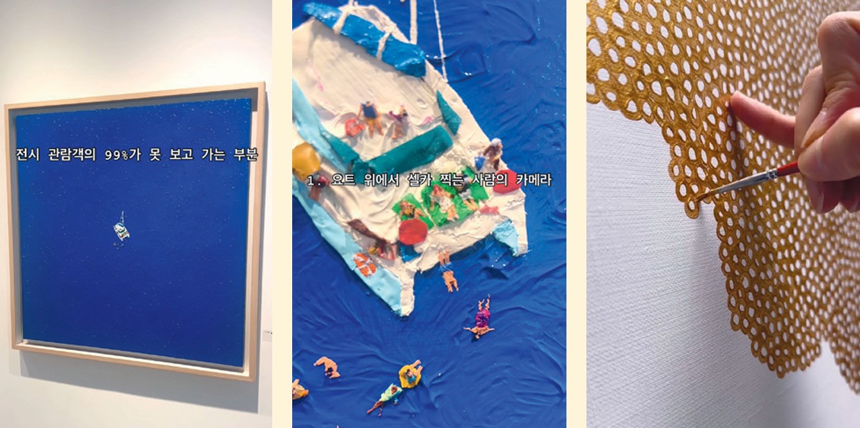 반면 이상원은 전시공간의 한 장면을 “전시 관람객의 99%가 못 보고 가는 부분”이라는 짧고 궁금증을 자극하는, 이른바 ‘후킹’ 문구와 함께 영상으로 소개했다. 이 게시물은 600만 조회수를 기록하며, 작품에 대한 호기심을 불러일으키는 간단한 장치만으로도 대중의 주목을 이끌어낼 수 있음을 보여주었다.