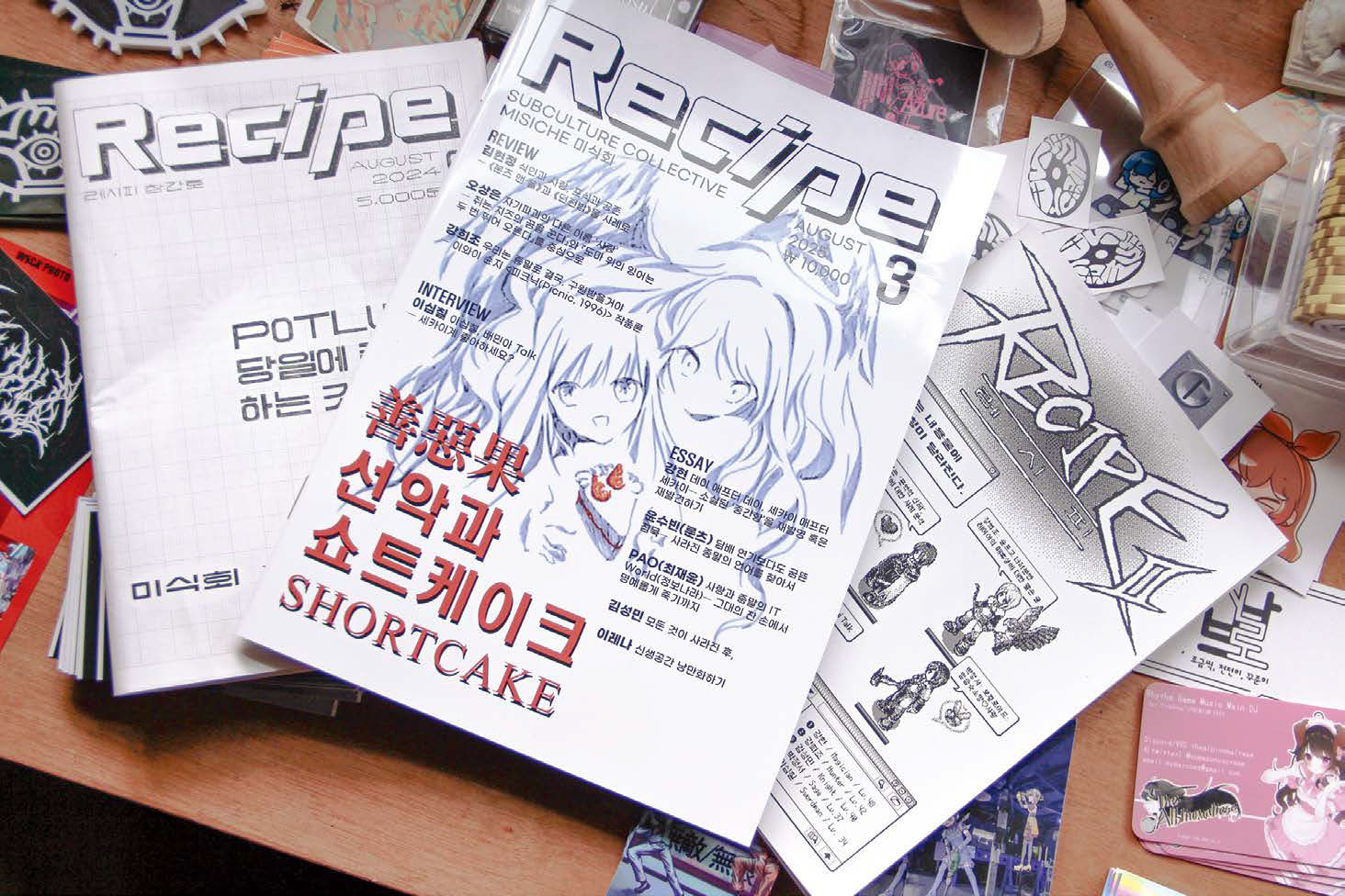 먼저 서브컬처 공간을 거점 삼아 이뤄지는 이른바 한국 오타쿠 뉴웨이브 운동이라 할만한 일련의 연구, 창작, 전시, 교류의 흐름을 지목하고 싶다. 2020년 문을 연 공간 pie는 “범주를 좁힌 전시 기획”, 구체적으로 말해 “만화, 게임, 애니메이션을 포함한 서브컬처”를 중심에 두는 전시 기획을 목적에 두고 있다.12 한편 같은 건물에 위치한 공간 H.ai 또한 “서브컬처 공연, 렉처, 마켓 소모임을 기획하는 커뮤니티형 카페”로 성격은 다르나 지향은 같다.13 물론 2010년대 중반 신생 공간 시기에도 오타쿠 정체성과 코드를 적극 전유하는 기획과 작가—이를테면 진챙총과 장지우의 개인전14이나 강정석과 이수경의 전시 플랫폼 ‘피아☆방과후’15—가 있었다. 하지만 pie와 H.ai는 처음부터 서브컬처 커뮤니티의 양육과 돌봄에 방점을 찍고 운영되는 공간이기에 다르다. 그간 pie에서 기획한 《파이☆썸머☆피버》, 《패턴》, 《Snow Wizard: 파티 플레이!》, 《로컬!》과 같은 교류 중심 전시는 “작가와 관객이 연대를 통해 완성되는 공간”16을 만들고자 하는 pie의 관계 지향적 정체성을 드러낸다. 특히 《로컬!》은 ‘캐릭터 회화’라는 장르를 주로 그려온 한국과 일본의 작가 28명의 작품을 내건 기획 전시로 제목에 담긴 의미가 흥미롭다. 해당 전시를 공동 기획한 아케미 작가는 전시 입장객 배포 책자에서 ‘서브컬처 작가’의 경로에서 마주한 한계를 토로하는데 이에 대안으로 제시되는 개념이 바로 ‘로컬’이다. 전시 소개에 따르면 ‘로컬’은 “특정 문화가 시작된 곳의 사람이 아니더라도 그 지역과 문화를 이해하는 사람이 같은 시대에 다른 어떠한 태도로 만든” 무엇을 긍정하는 관점을 담고 있다.17 즉 본래 국적과 상관없이 귀속 의식을 느끼는 문화의 ‘로컬’, “현지인”처럼 창작하자는 주장인데18 이는 순진하게 들릴 수도 있지만 앞서 캐릭터 기호를 언어 삼는 초국적 창작 네트워크의 가능성을 상상하게 만든다. 한편 pie는 현재 운영되고 있지 않지만 H.ai에서는 공연과 행사가 이어지고 있다. 특히 부정기 행사 ‘포트 오브 락 마켓’은 “미술, 출판, 패션, 디자인 등 다양한 분야에서 활동 중인 창작자의 작품을 전시하고 판매하는 행사”19로 서브컬처 아트 콜렉티브 ‘미식회’의 앤솔로지 『레시피』, 국내 유일 애니메이션 잡지 『쿄로쿄로』, 서브컬처 비평·리뷰 커뮤니티 ‘애니큐어’의 비평 동인지 『크림』과 같은 출판물을 소개하는 통로로 자리 잡았다. 출판물의 방향성과 정체성은 모두 다르지만 이는 ‘로컬’하게 서브컬처를 수용하고 경험하려는 시도라는 차원으로 수렴된다.