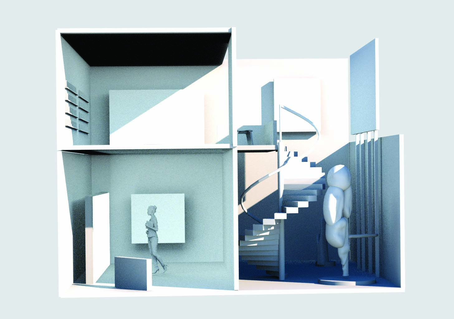 나는 사업이 선정된 이후 각 분야의 전문가를 직접 찾아가 한 명 한 명 설득하여 팀을 꾸렸다. 가장 큰 과제는 공간이었다. 10m가 넘는 층고에 구조물을 설치하고, 그 사이로 자연광이 통과해야 했다. 구글 로드뷰를 켜고 도시를 돌아다니며 후보지를 찾았고, 기적적으로 한강진의 워킹위드프렌드갤러리에서 3층과 4층 전시 공간을 잇는 야외 공간과 원형 계단 구조를 발견했다. 공간을 발견한 순간부터 다시 시뮬레이션이 시작됐다. 작품 기획과 공간 배치 이미지, 구조물 규격, 예산, 재료, 인원, 기간까지 필수적인 모든 요소를 수치와 이미지로 정리하여 제안했다. 그렇게 워킹위드프렌드갤러리와 함께하게 되었고, 갤러리 측은 든든한 파트너로서 전시가 더 좋은 형태로 완성되는 데 큰 도움을 주셨다.