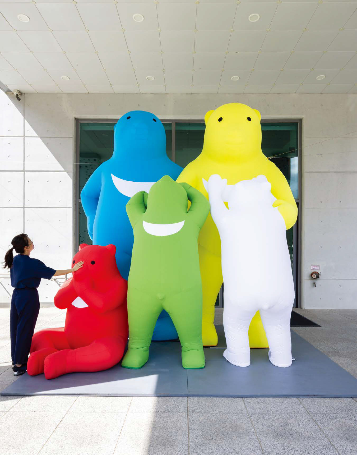 경기도 양주 석현천을 따라 장흥계곡으로 올라가는 길목, 양주시립민복진미술관 입구에서 반달가슴곰 가족이 가을볕을 맞고 있다. 높이가 3.5m에 달하는 커다란 곰 두 마리가 우뚝 서 있고 어린 곰 세 마리가 그 앞에서 앉거나 매달리며 옹기종기 모인 모습이다. 한평생 청동과 돌로 여성의 풍만한 신체를 표현하여 한국 조각사에서 여체 조각의 개척자로 알려진 원로 조각가 고정수가 가족 간의 애정을 형상화한 공기(空氣) 조형물 작업 〈한마음 한가족〉(2025)이다. 작가는 작품이 설치된 미술관 정문 앞 야외 공간을 ‘조각 놀이터’라고 이름 지었는데, 각각 원색에 가까운 강렬한 색상과 풍선처럼 부푼 몸을 가진 곰들이 우리에게 익숙한 몸짓을 보여주는 덕분에 미술관을 찾는 방문객들은 유희적인 경험을 맛보며 이 푹신한 조각을 놀이처럼 즐기게 된다. 본 작품은 실제로 시각장애인, 어린이 등을 포함한 관객층이 만지면서 감상할 수 있는 촉각 조형물로 전시되고 있다.
