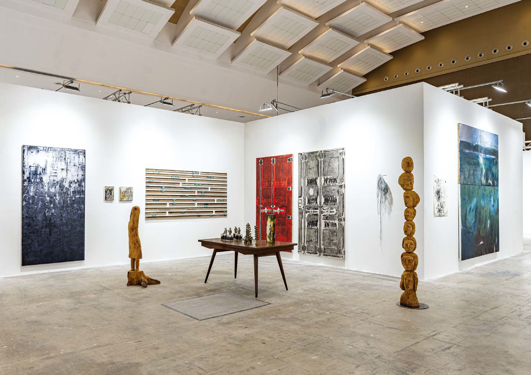 나무 패널, 캔버스에 아크릴릭, 부드러운 조각 가변 크기 2025 아트 자카르타 퍼포먼스 전경 2025
