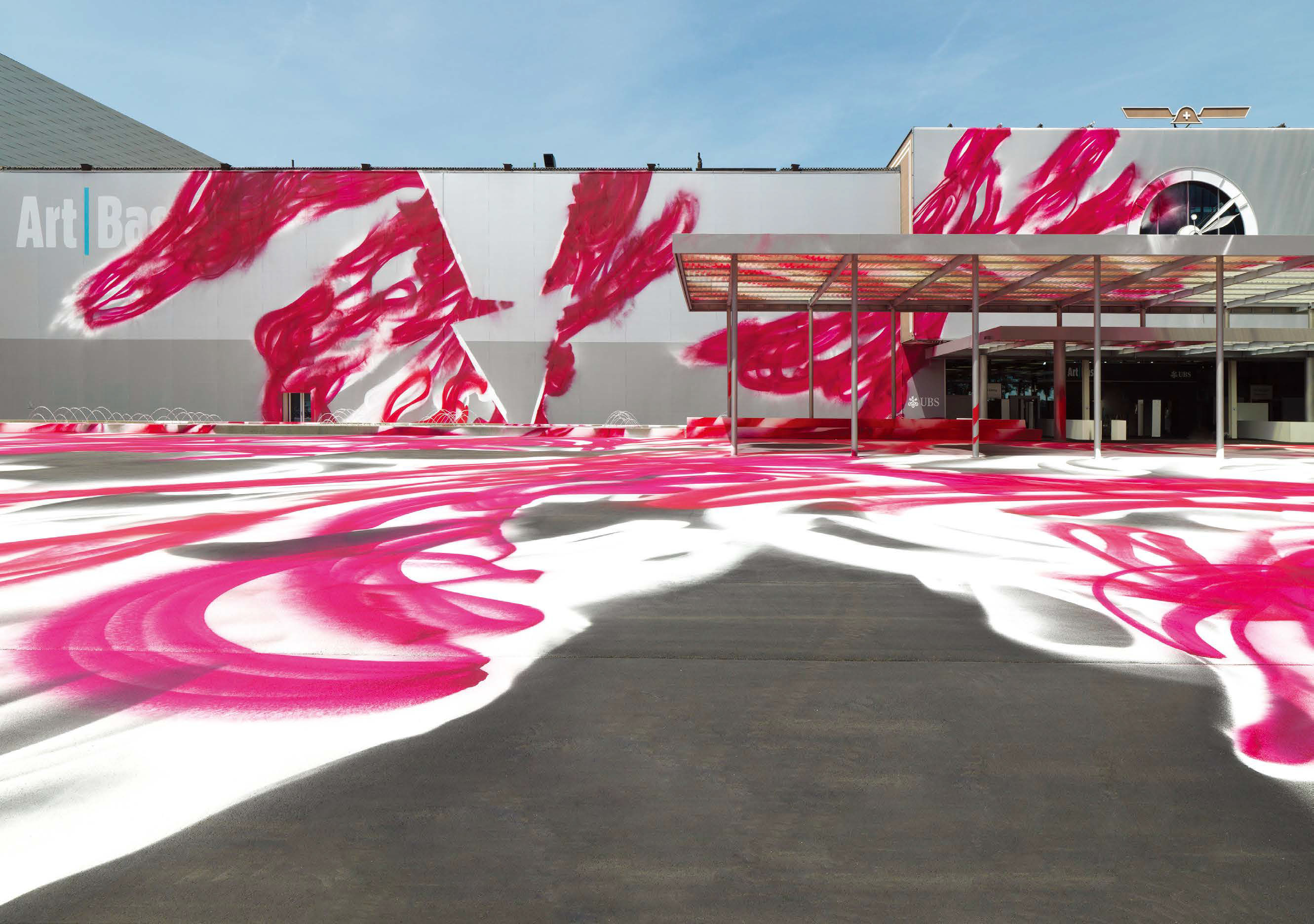 이글이글 타는 듯한 더위 속, 6월의 바젤은 마젠타 색이었다. 독일 작가 카타리나 그로세(Katharina Grosse)의 대형 페인팅 설치작〈Choir〉(2025)은 아트바젤이 열리는 메세플라츠의 5,000㎡ 공간을 강렬하게 물들이며, 전례 없는 스케일의 시각적 경험을 선사했다. 이 작품의 존재감은 단순한 장식이 아니라, 불확실한 시장에서 여전히 바젤이 중심에 있다는 선언처럼 보였다.