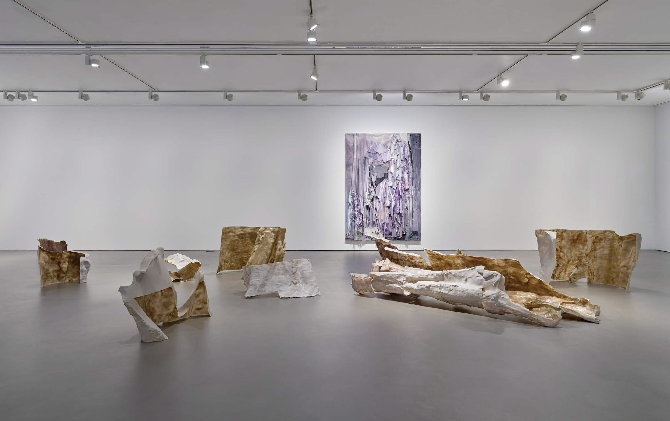 The venue that affixed the official seal to Jung’s shift was Multipurpose Henry (2019), held at Maison Hermès. This exhibition, along with Gouge (Incheon Art Platform, 2022), demarcated the vantage point over the latter half of the artist’s work, signaling an alteration in focus from well-organized landscape composition to experiments with sculptural media. Most of Jung’s pieces now involve masses with volume and weight, the use of waste material has undergone a significant reduction, and the properties of the objects change with minimal intervention. This transformation is especially evident in Gouge, which reinterprets traditional sculpture by incorporating automated technologies such as 3D scanning and 3D printing. From grinding, dividing, changing perspective, and stacking to surface lifting, altering materials, and printing, the artist’s interventions—which fly in and retreat as lightly as a boxer’s jab—are lively yet more substantial than they seem. For instance, grinding and dividing were applied to Boots (2022), which turned the legs of a mascot upside down. Here the artist reveals properties typically concealed in traditional sculpture practices. The surface of Boots, as colorful as a multi-layered painting, is the result of grinding down the FRP outer shell and putty heaped on to conceal the primary colors of the 3D printed product. The inverted legs are composed of masses stacked at a slight angle. Although in fact produced in separate pieces, the camouflage of the sculpture is designed to hide the joined areas when completed, yet this duplicity is suddenly exposed due to the gaps created through the haphazard stacking process. Swept (2022), which appears wide from the front but flat when viewed from the side, explores the properties of sculpture that prevent it from being fully grasped from a single perspective. Torso from Afar (2022), a segmented print output of the scan data from A. Maillol’s La Rivière (1943), addresses the discrepancy between surface and interior. Each of these pieces pokes sculpture in the side from a different entry point. The rebellion is not overt, but it is pointed enough to make us flinch in surprise.